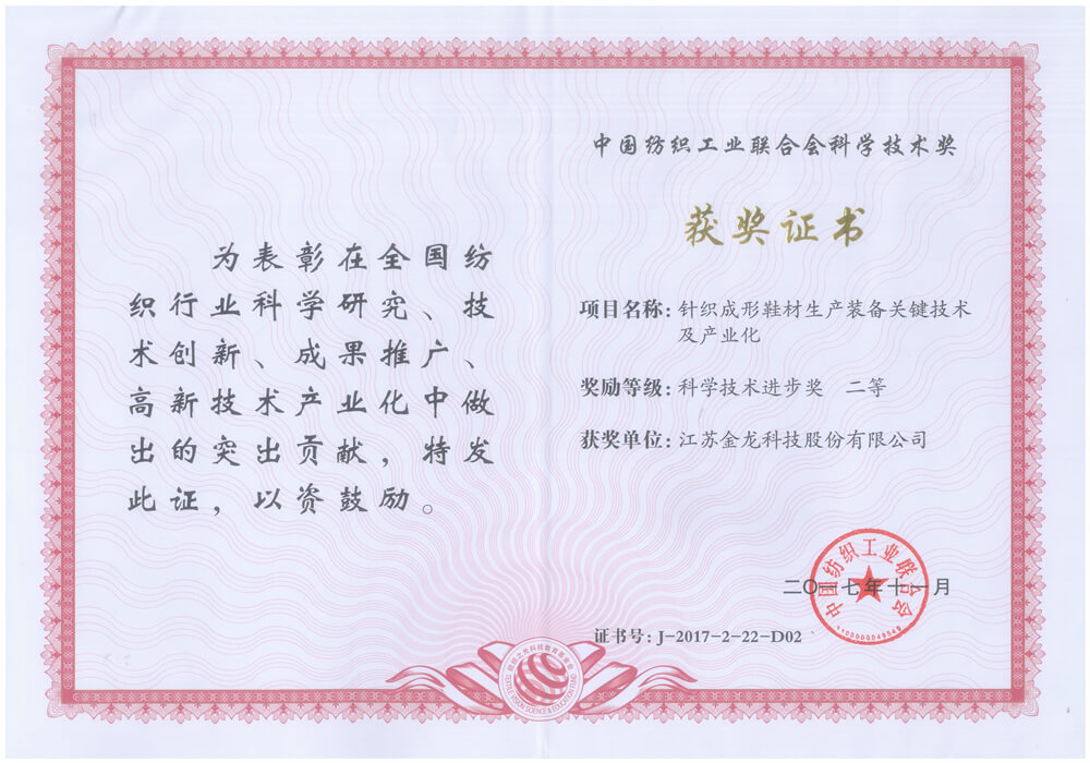 Certificate of Science and Technology Award of China Textile Industry Federation