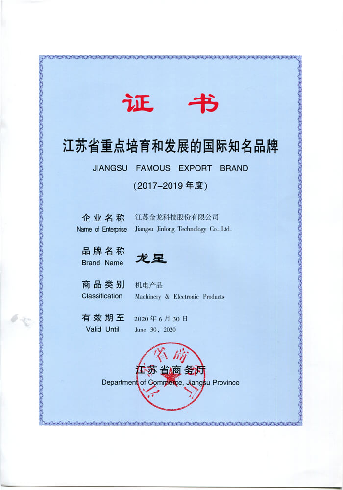 Jiangsu Famous Brand Certificate