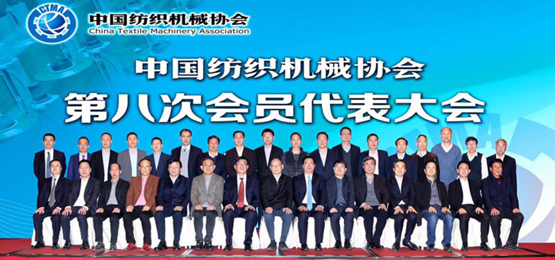 Chairman Jin Yongliang (right fifth in the back row) poses with the newly elected leading members of the 8th Council of China Textile Machinery Association